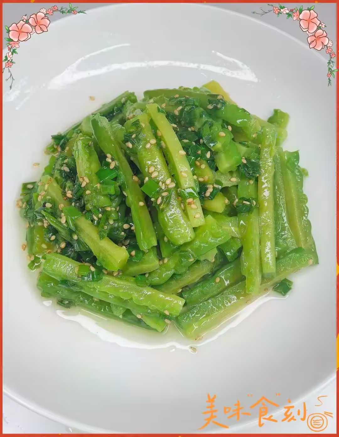 苦瓜裡面苦味素能促消化液分泌,加點蔥油食慾也起來了,搭配芝麻既清爽又有營養。