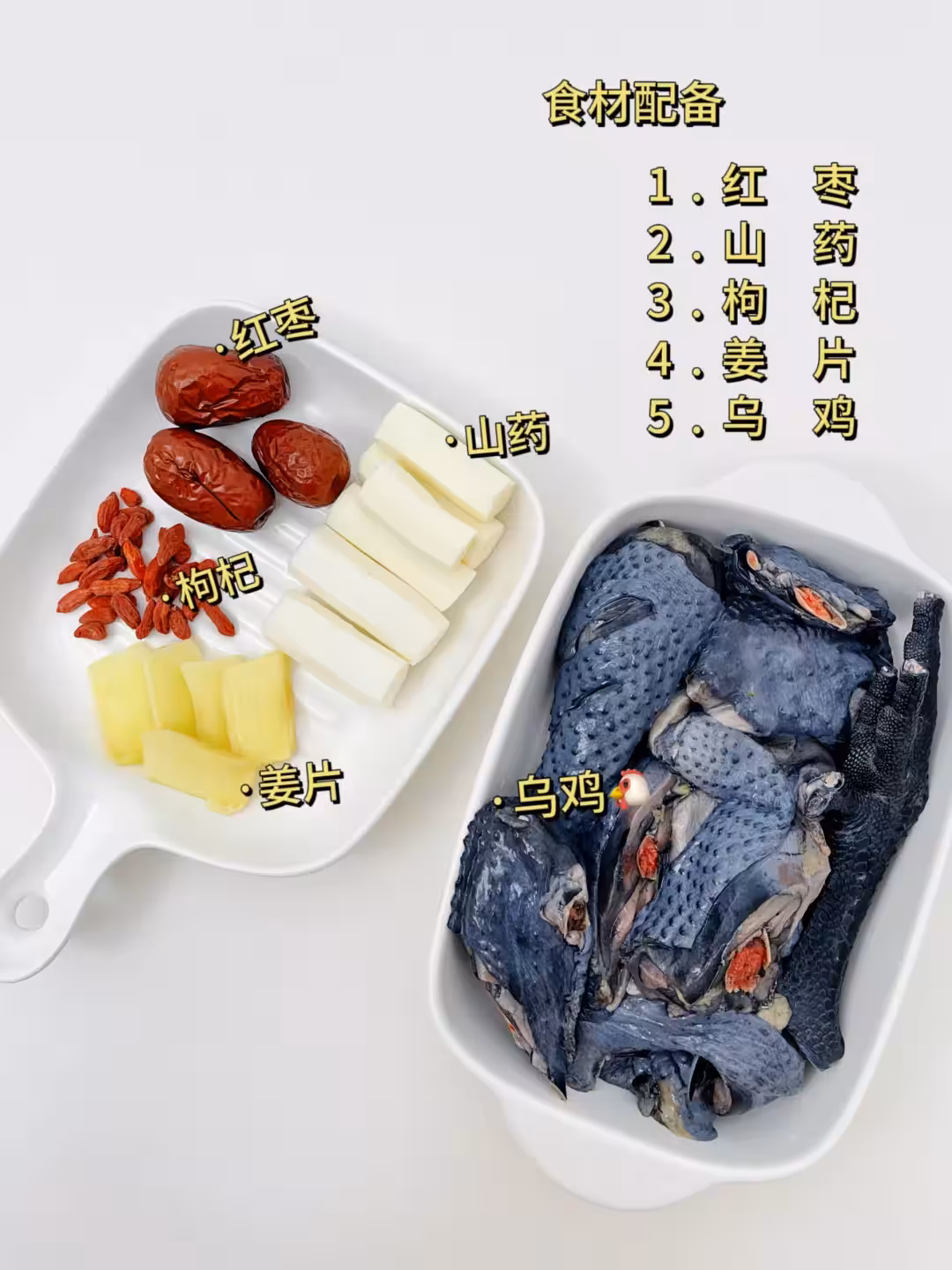 食材:紅棗 、枸杞 、生薑 、山藥 、烏雞