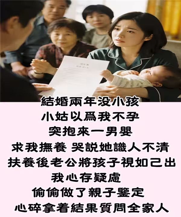 結婚兩年沒小孩!小姑以為我不孕「突抱來一男嬰」求我撫養,哭說她識人不清,扶養後老公將孩子視如己出,我心存疑慮「偷偷做了親子鑑定...」心碎拿著結果質問全家人