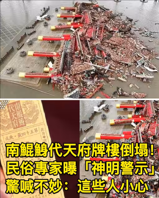 颱風丹娜絲重創台灣西南部,尤其台南市災情慘重,不僅傳出路樹倒塌、屋頂被吹飛的狀況,擁有逾40年歷史的南鯤鯓代天府牌樓更是不敵強風被吹垮,12根檜木轟然倒塌,讓當地居民難以置信,民俗專家廖大乙提醒,牌樓倒塌具有一種「警示」意涵,象徵著神明威信被挑戰,「作惡多端的人要小心了」。