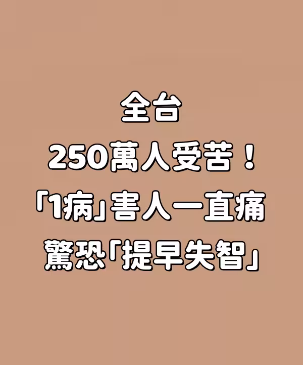 快訊/全台250萬人受苦!「1病」害人一直痛 驚恐「提早失智」