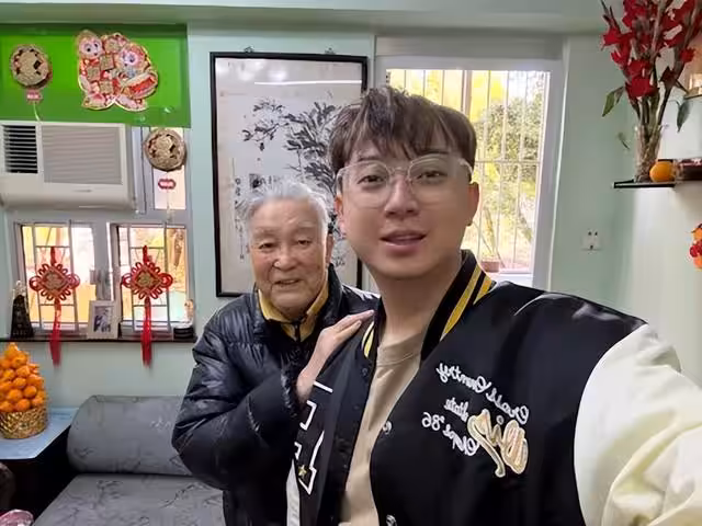 從其侄子發出的照片見,周驄的侄仔到訪周驄家裡,屋內有不少新年掛飾及年花,估計是農曆新年期間侄仔去拜年,而周驄也搭著侄仔肩膀開心合照,雖然已一頭白髮,但精神不俗。