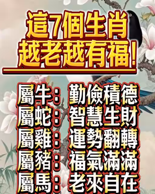 以上八個生肖,不論起點如何,都在歲月中慢慢積累了自己的福報,到了晚年,自然能安享成果。