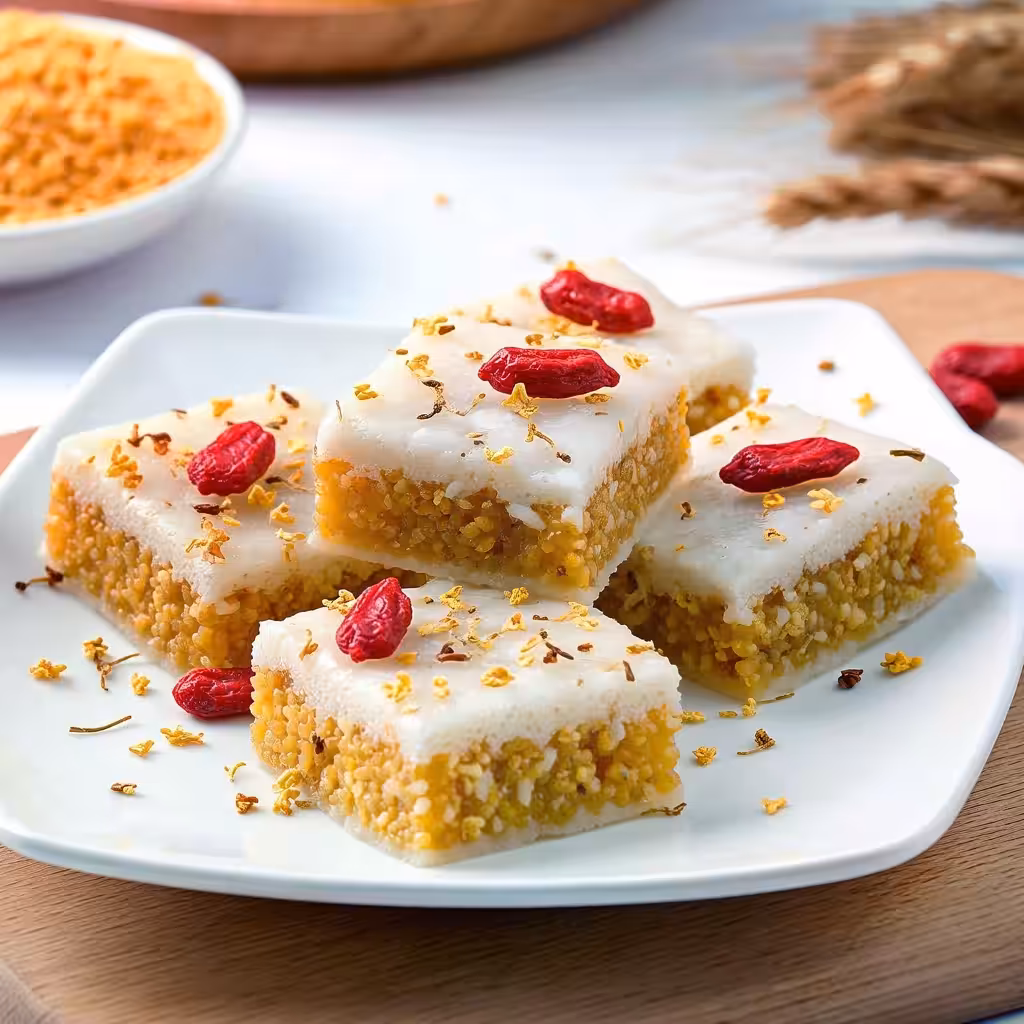 2. 混合小米、山藥泥和糯米粉,揉成團後分小劑子,模具壓花;