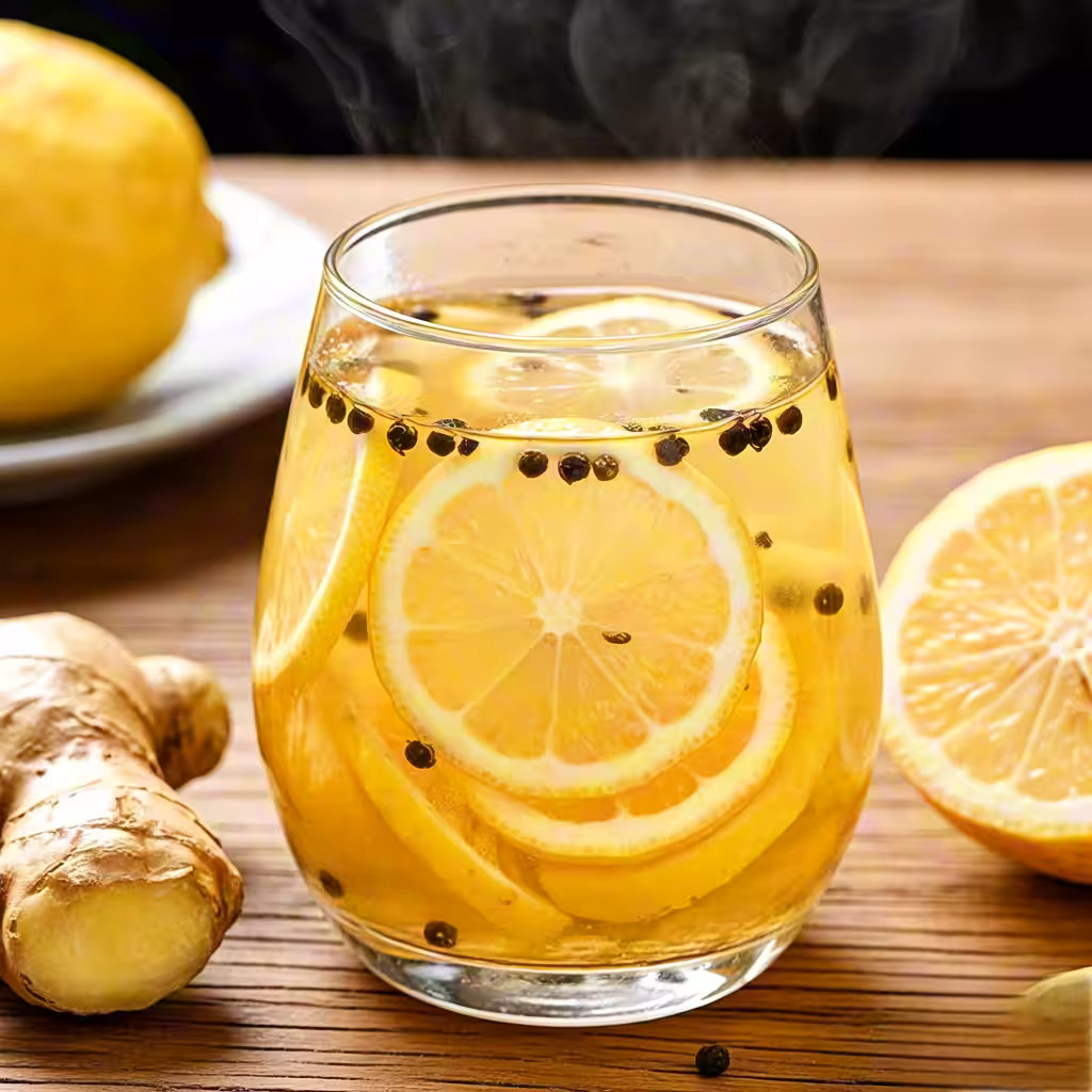 檸檬1/2個、薑黃粉1小勺、黑胡椒少許(促進吸收)、溫水400ml