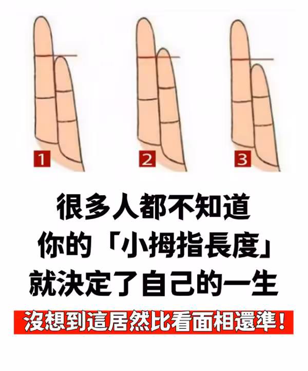 很多人都不知道,你的小拇指長度就決定了自己的一生,沒想到這居然比看面相還准!