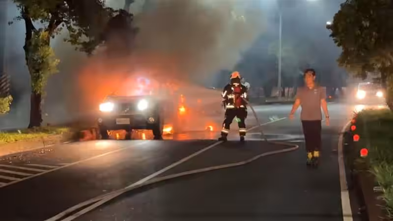 快訊/台東發生火燒車意外!大火吞噬整台休旅車 縣議員急逃生!
