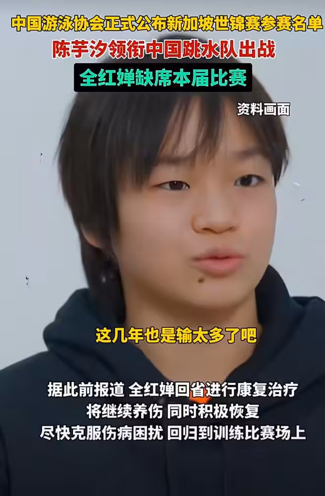 不過讓人意外的是,在全紅嬋養傷了1-2周之後,當粉絲等待好消息的時候,中國跳水隊這邊官宣全紅嬋因為傷病的問題,將缺席新加坡世錦賽,同時全紅嬋將返回廣東省隊進行康復治療。在中國跳水隊還在緊鑼密鼓的進行備戰訓練的時候,全紅嬋返回了廣東。