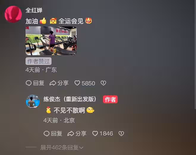 這6個字是發表在她的隊友練俊傑的一則視頻下面的評論,除了文字外,她還特意配上了另一位世界冠軍王楚欽的表情包,用以表達心情。