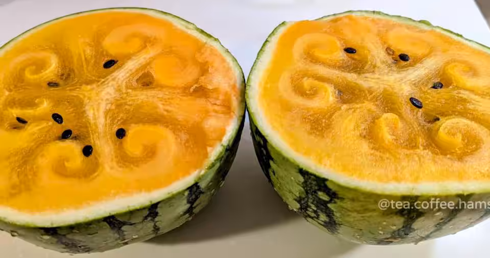 一名網友日前在社群平台Threads發文表示,自己購買西瓜準備切來食用時,竟發現果肉布滿整齊對稱的螺旋紋路,模樣猶如動畫中的神秘果實,讓他相當驚訝,他也在貼文中詢問網友:「這能吃嗎?」