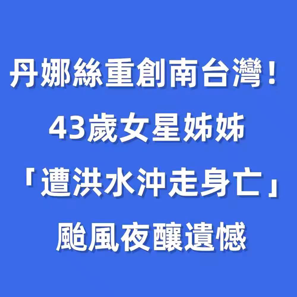 丹娜絲重創南台灣!43歲女星姐姐「遭洪水沖走身亡」颱風夜釀遺憾!