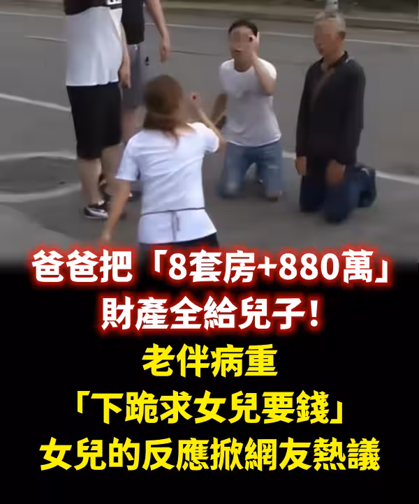 爸爸把「8套房+880萬」財產全給兒子! 老伴病重「下跪求女兒要錢...」女兒的反應掀網友熱議