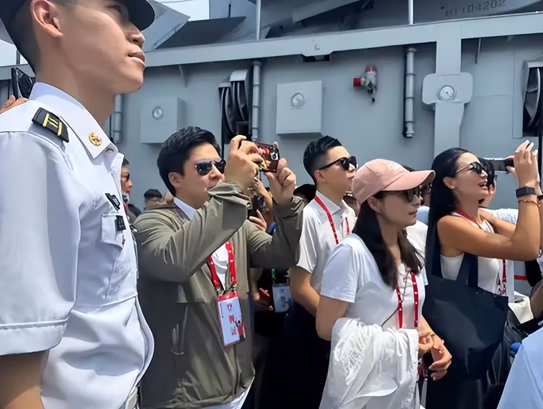 郭晶晶登山東艦人氣爆棚,合照細節證明地位,公公霍震霆表情絕了