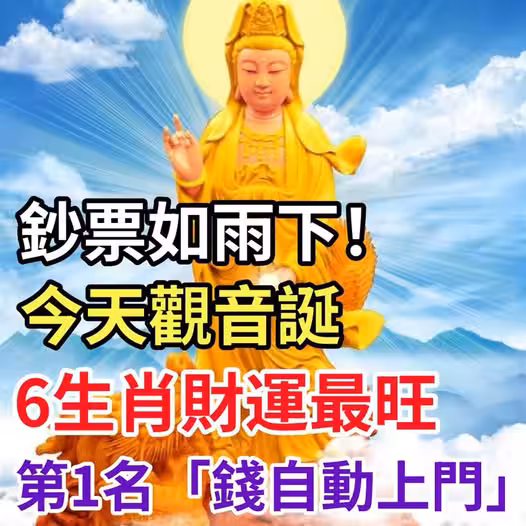 鈔票如雨下!今天觀音誕,6生肖財運最旺,第1名「錢自動上門」