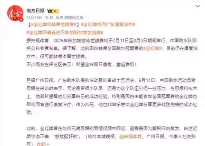 無緣冠軍一周,全紅嬋凌晨發文暴露真實現況,父親的擔心應驗了