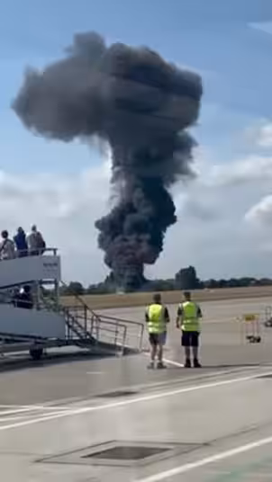 快訊/飛機墜毀機場「炸出巨大火球 」!警消緊急到場「目前狀況曝光!」