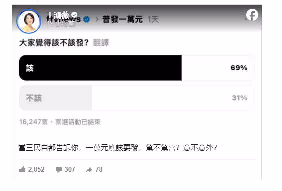 該不該「普發1萬」!投票結果,近7成大反轉