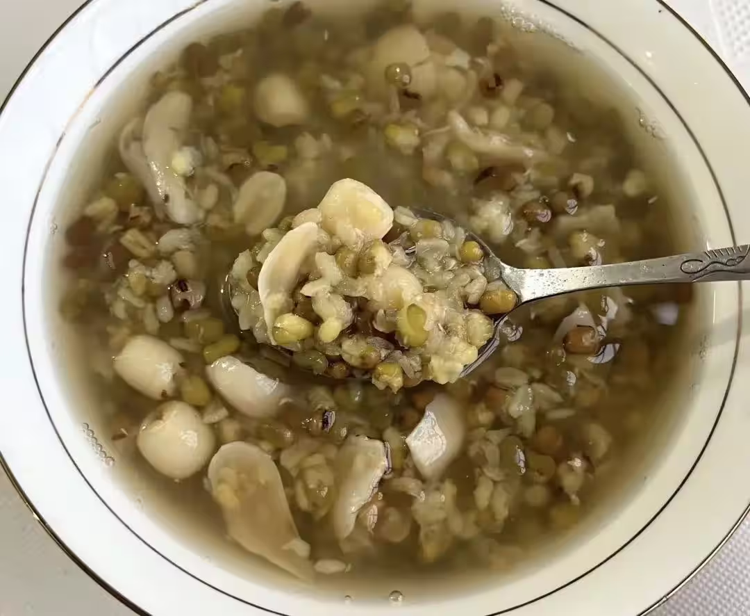 做法:把銀耳提前泡發撕成小朵,綠豆、枸杞、紅棗和桂圓沖洗乾淨。將所有材料放進燉鍋,加水1000毫升,大火煮沸後轉小火慢燉1小時。燉到綠豆和銀耳軟爛就行,喝的時候溫一點就行,別太燙。