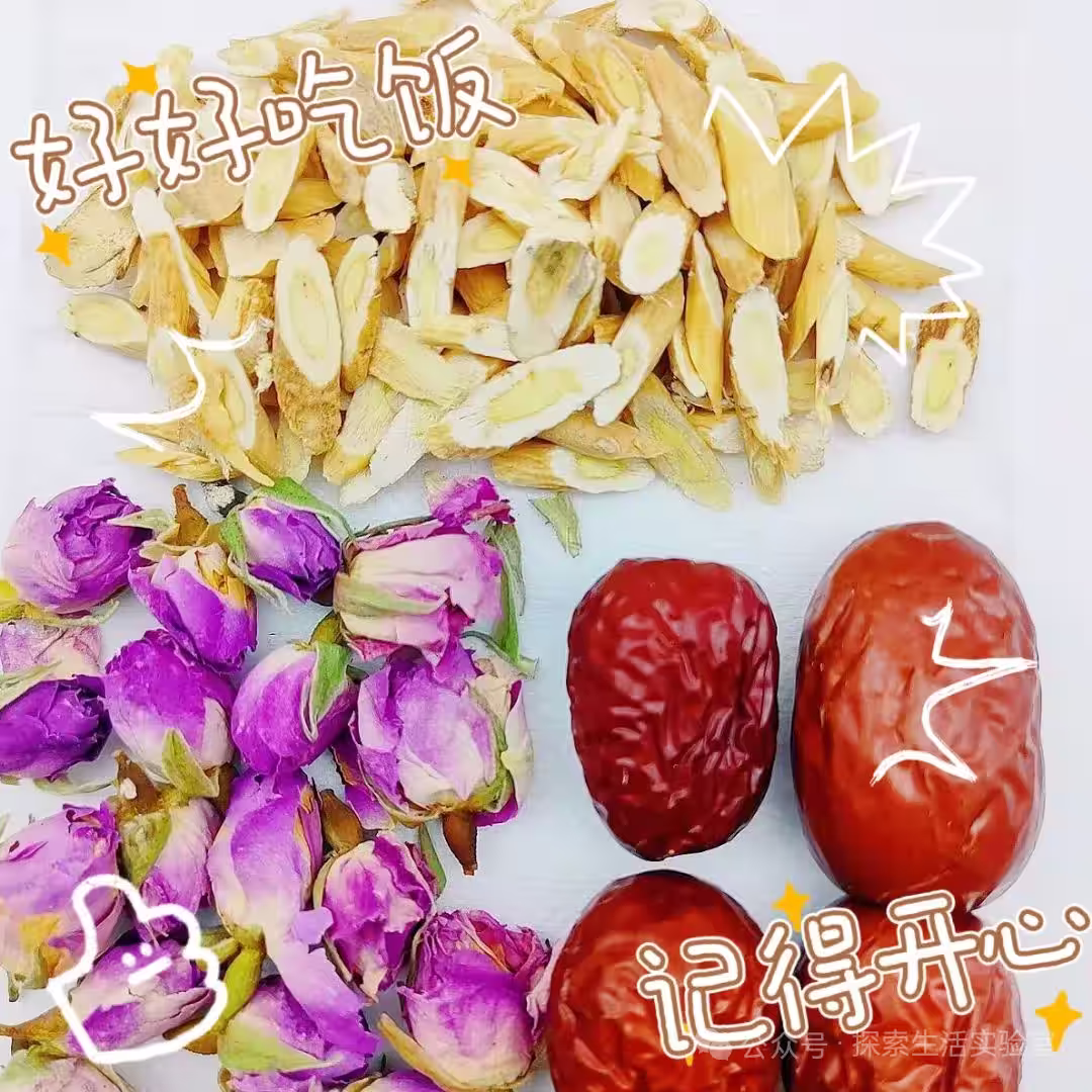 📖食材 玫瑰花3朵、黃芪10g、紅棗3顆(去核)