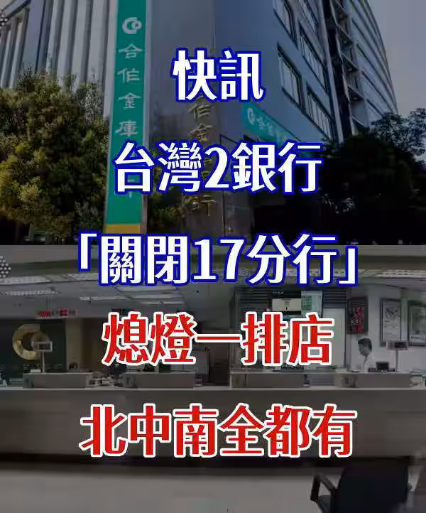 繼台北富邦銀行10間分行暫停營業,合作金庫銀行也宣告,將6間分行合併,其中3據點裁撤。