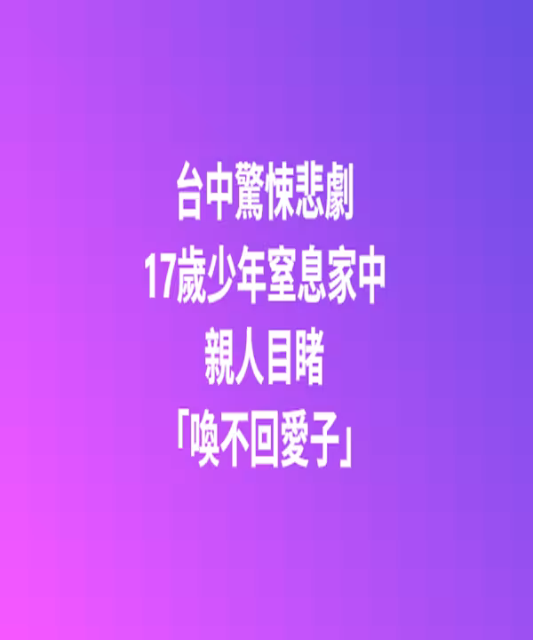 台中市南屯區(14)日傍晚發生一起驚悚事件,一名17歲未成年男子不明原因在家中窒息,當場失去生命跡象,家人目睹悲劇後,驚嚇之餘立刻通報台中市消防局、轄區第四分局求助,消防救護人員火速將男子送往林新醫院急救,無奈最終仍回天乏術,詳細案情待進一步釐清,並報請台中地檢署相驗死因。