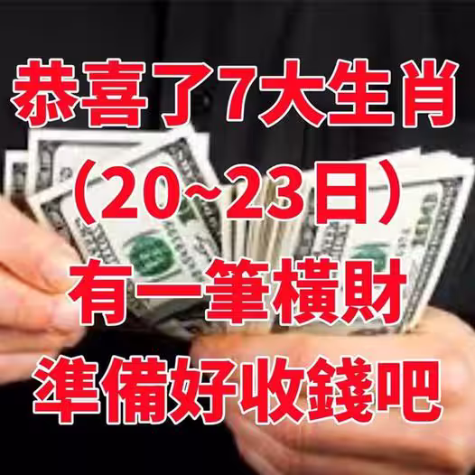 恭喜了7大生肖,在未來三天( 7月20~23日)即將有一筆橫財!準備好收錢吧!