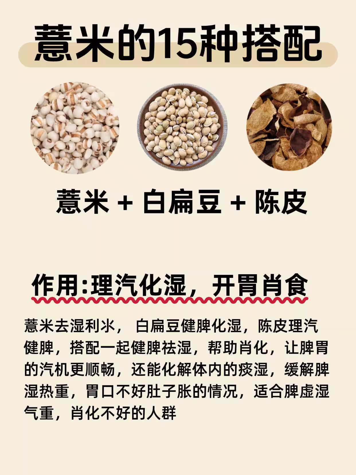 ❺10克薏米+10克白扁豆+3克陳皮