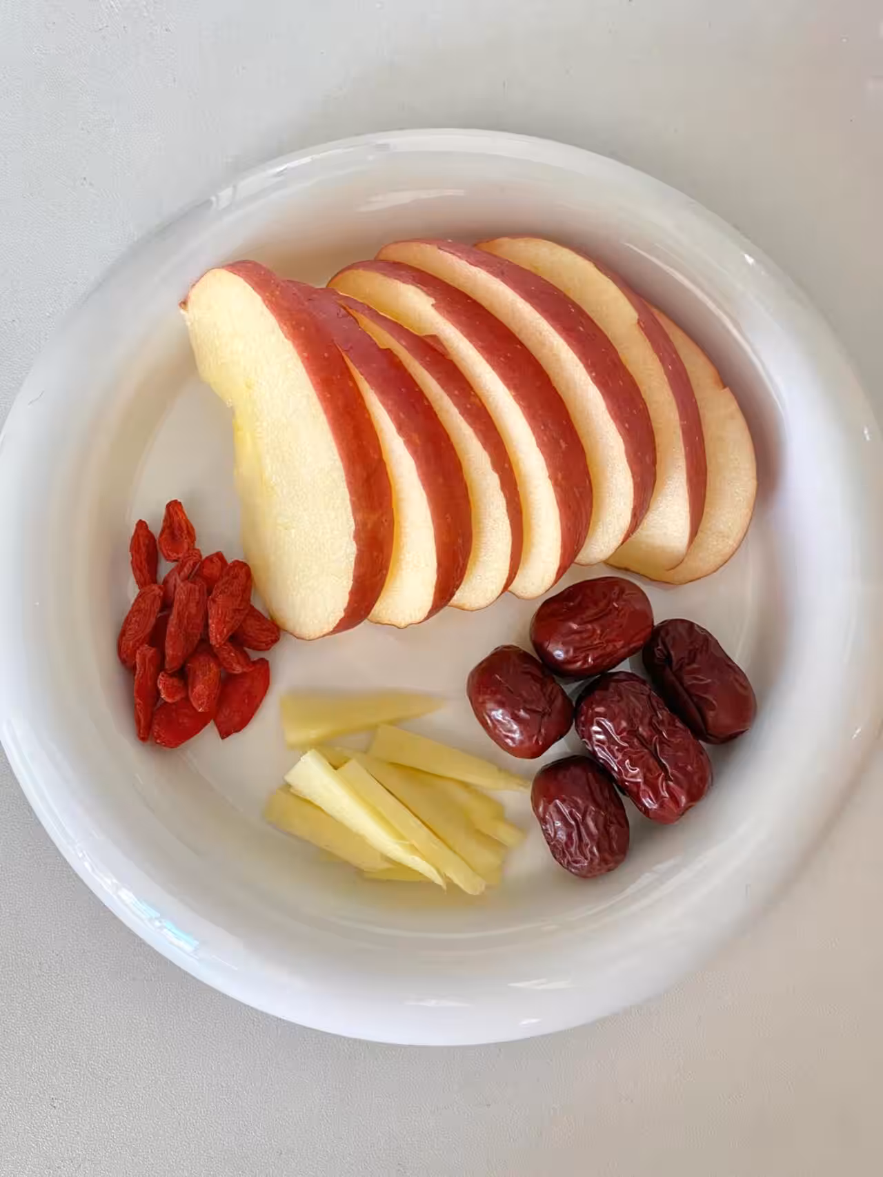 ✔️食材: 蘋果、紅棗、枸杞、姜