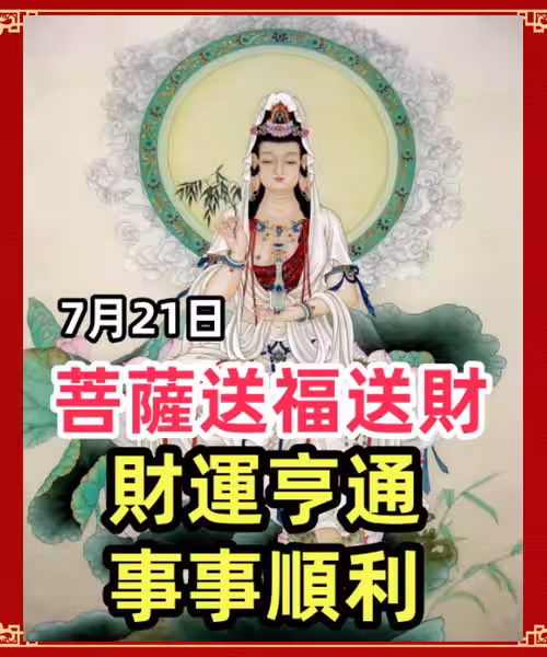 7月21日菩薩送福送財,六大生肖財運亨通,事事順利~