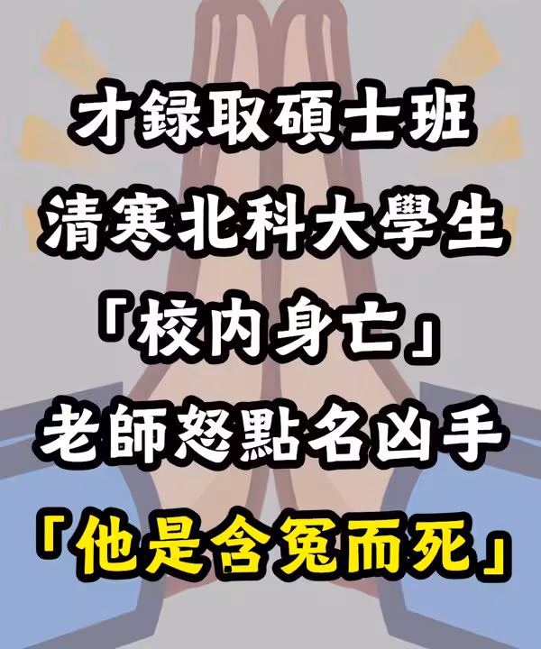 才錄取碩士班! 清寒北科大學生「校內身亡」...老師怒點名兇手「他是含冤而死」
