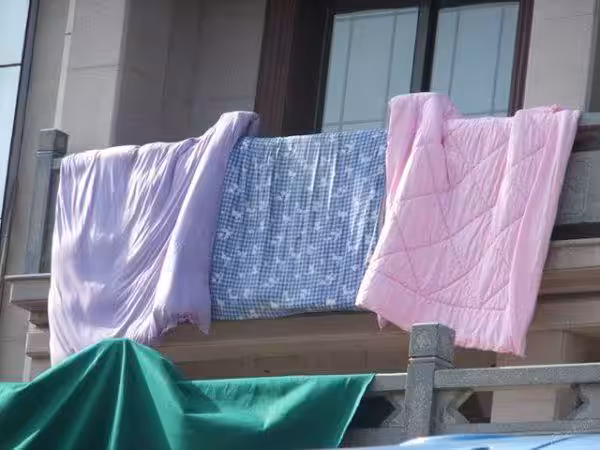 接著我笑著告訴鄰居,我這人不太愛乾淨,窗戶好幾年都沒擦,上面都髒兮兮的,如果鄰居不介意,這個被單我替你洗了吧。