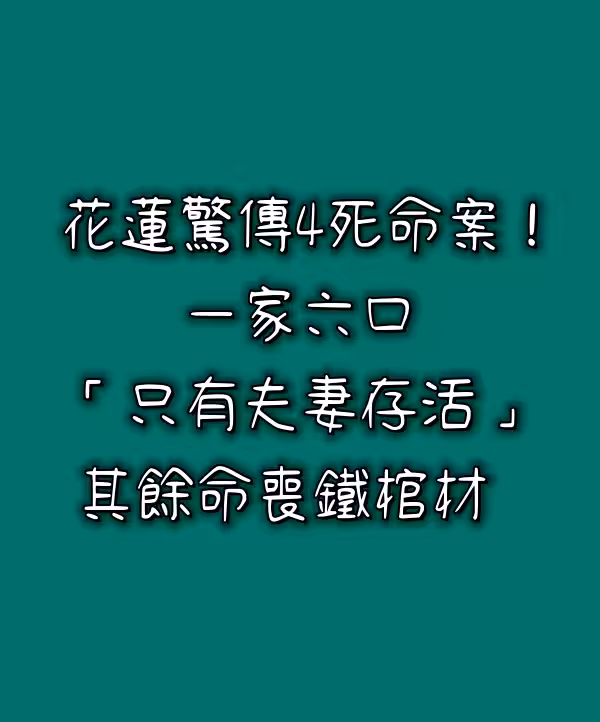 快訊/花蓮驚傳4死命案!一家六口「只有夫妻存活」其餘命喪鐵棺材