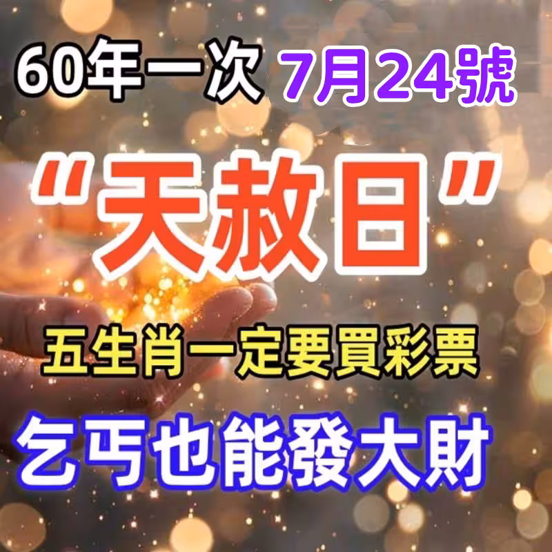 💰 明天7月24號「天赦日」!這5個生肖必買彩票,乞丐都能翻身發大財!尤其最後一個,躺著都能中獎!