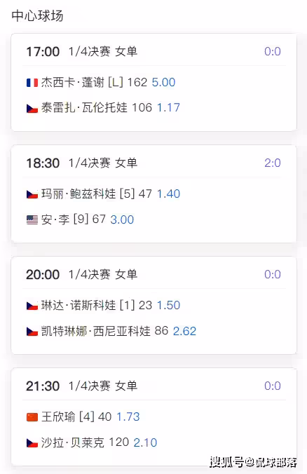 賽前,相關機構提前給出了數據分析,認為王欣瑜的取勝賠率1.73,貝萊克的贏球賠率2.10,也就是說,賠率非常接近,意味著王欣瑜很有可能被貝萊克爆冷淘汰,最有可能出現的比分是1-2。