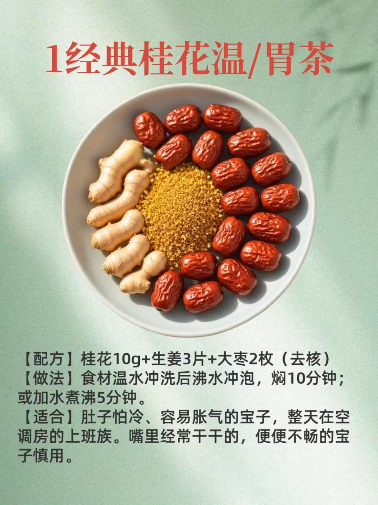 🌿經典桂花溫.胃茶:肚子怕冷、容易脹.氣的寶子們有福啦!桂花搭配生薑、大棗,溫水沖洗後沸水沖泡,燜10分鐘就能喝,溫.胃絕絕子,整天在空調房的上班族必備🌟