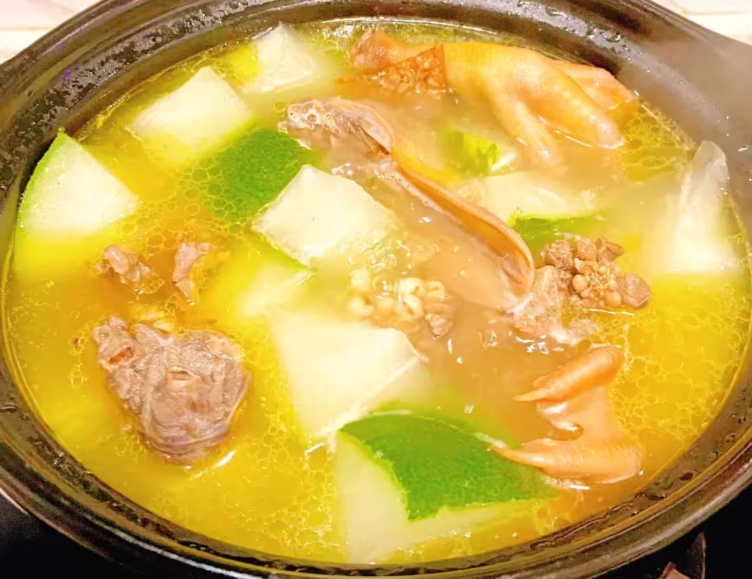 鴨肉半隻、冬瓜600g、薏米20g、芡實15g、陳皮1小塊、薑片3片、鹽少許