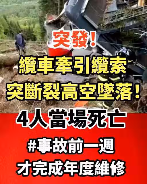 突發!纜車牽引纜索突斷裂高空墜落!4人當場死*亡 #事故前一周才完成年度維修 !