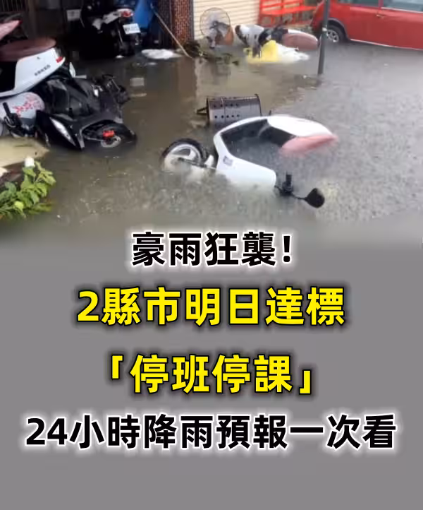快訊/豪雨狂襲!2縣市明日達標「停班停課」 24小時降雨預報一次看