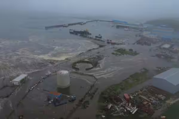 快訊/第一波海嘯到了!淹沒港口小鎮「空拍畫面曝光」