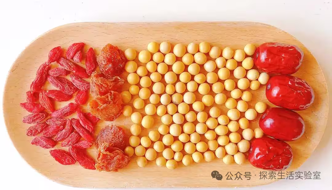 黃豆30g、桂圓4顆、紅棗3顆(去核)、枸杞10g、清水800ml
