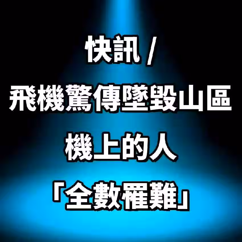 快訊/飛機驚傳墜毀山區!機上的人「全數罹難」