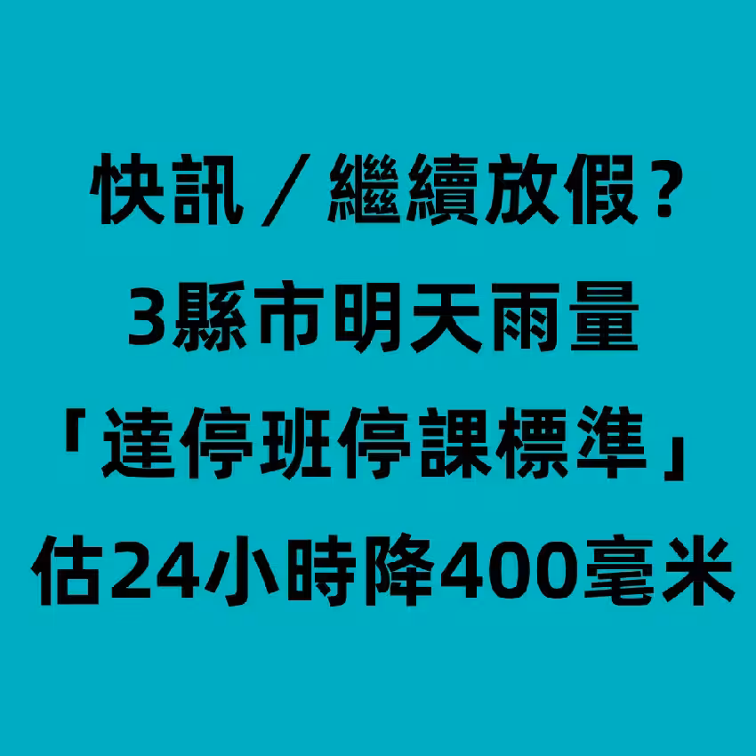快訊/繼續放假?3縣市明天雨量「達停班停課標準」 估24小時降400毫米