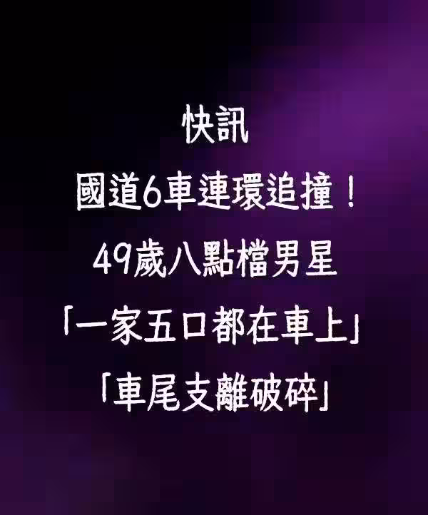 快訊/國道6車連環追撞!49歲八點檔男星「一家五口都在車上」 「車尾支離破碎」驚險過程曝