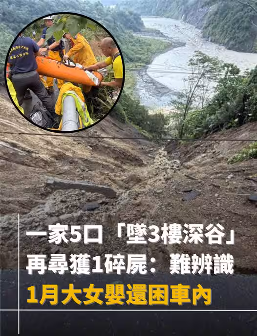快訊/1月大女嬰還困車內…一家5口「墜3樓深谷」!再尋獲1碎屍