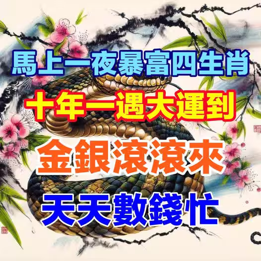 馬上一夜暴富「四生肖」不出5天,十年一遇大運到,金銀滾滾來,天天數錢忙!