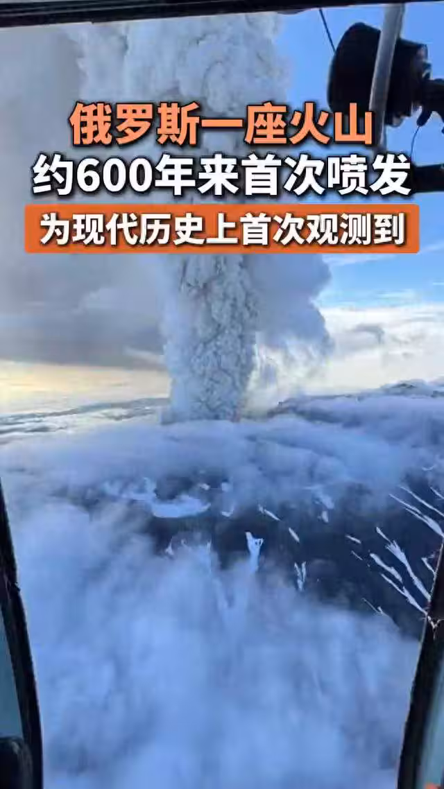 俄火山「600年首度噴發」!灰柱噴6000米高 橙色航空警戒