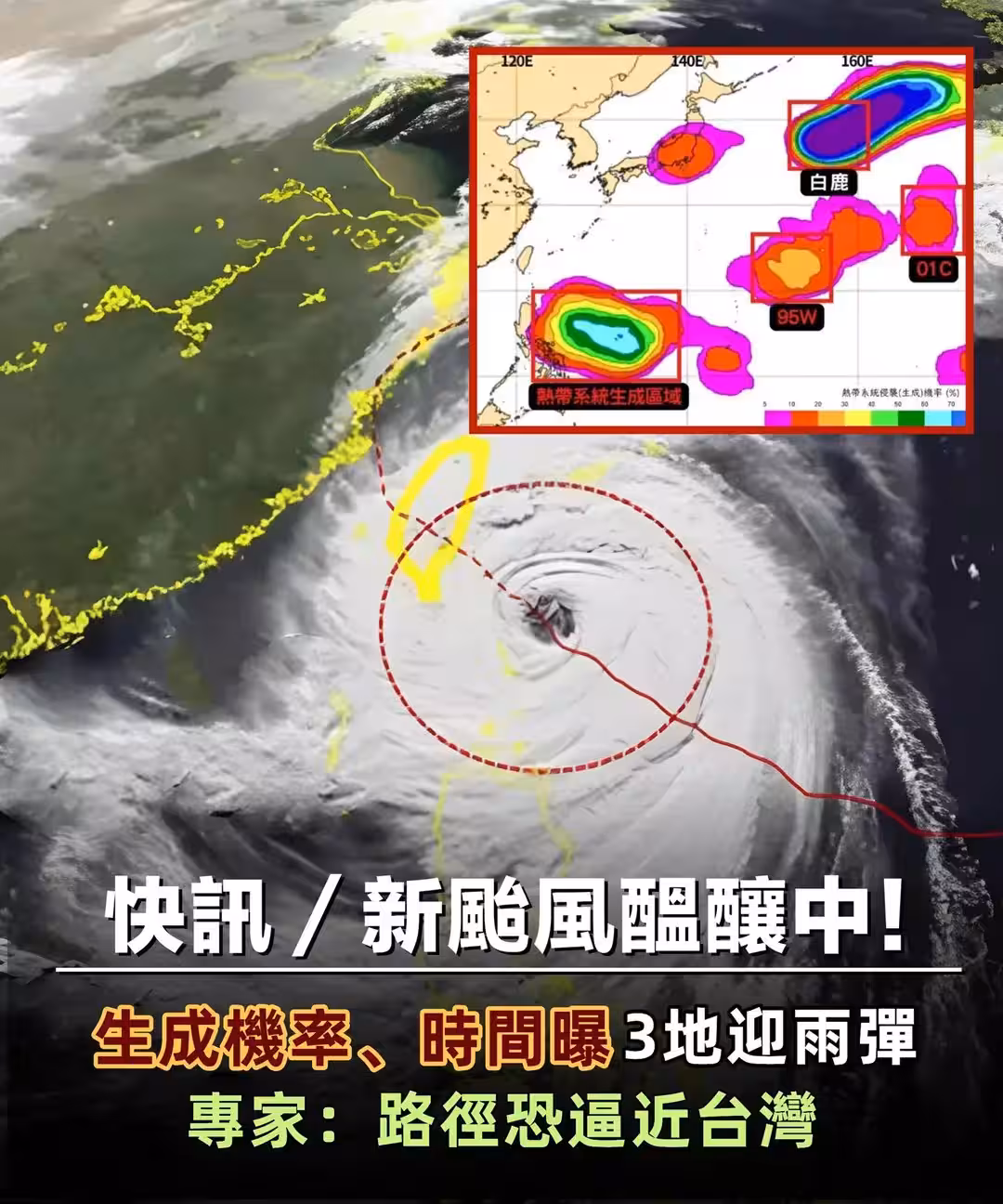 快訊/新颱風醞釀中!生成機率曝,3地迎雨彈,專家示警:路徑恐逼近台灣