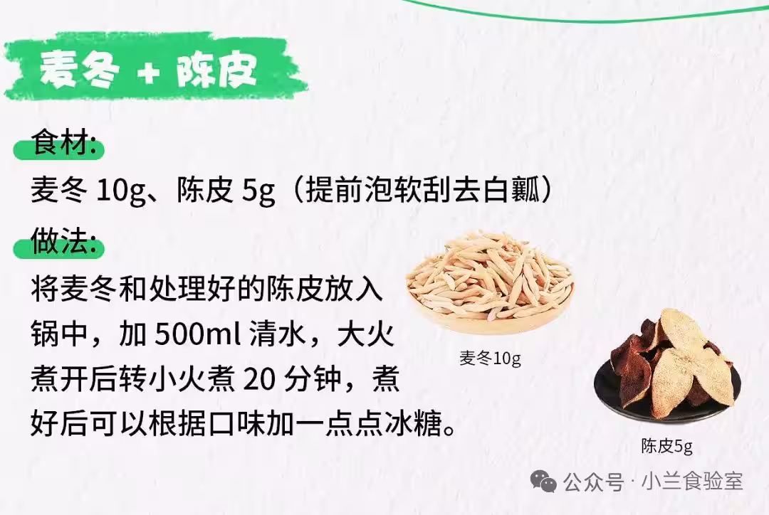 "麥冬10g🌿" + "陳皮5g🍊(先泡軟刮白瓤!)"