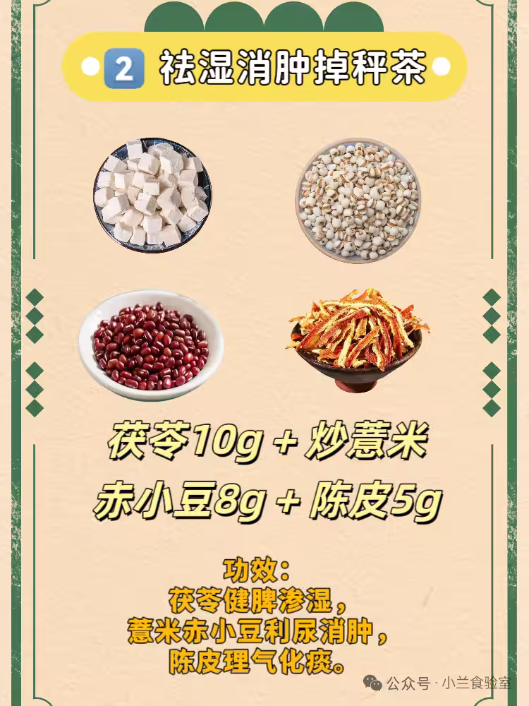 功效:茯苓健脾滲濕,薏米赤小豆利尿消腫,陳皮理氣化痰。連喝兩周,腰圍立減3cm,水腫「退退退」!