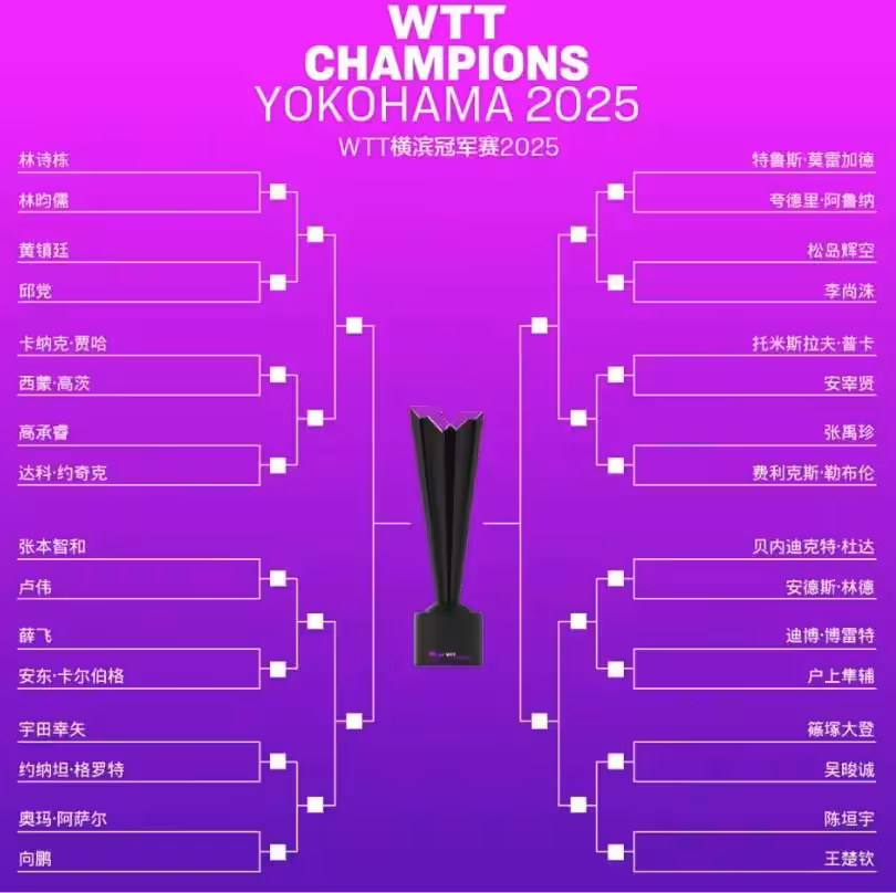 WTT日本橫濱冠軍賽一天之後將正式拉開大幕!目前,男乒方面的簽位已經出爐!而中國男乒的簽位不佳。為什麼這樣說呢?請接著往下看!